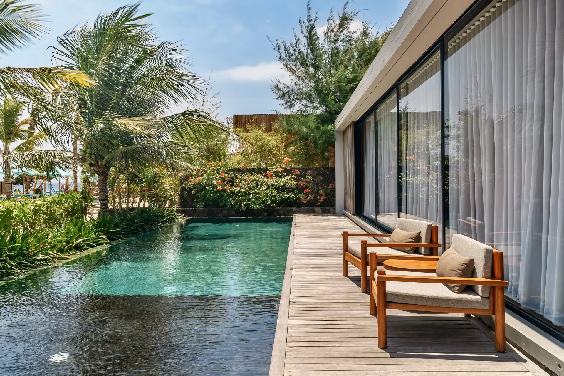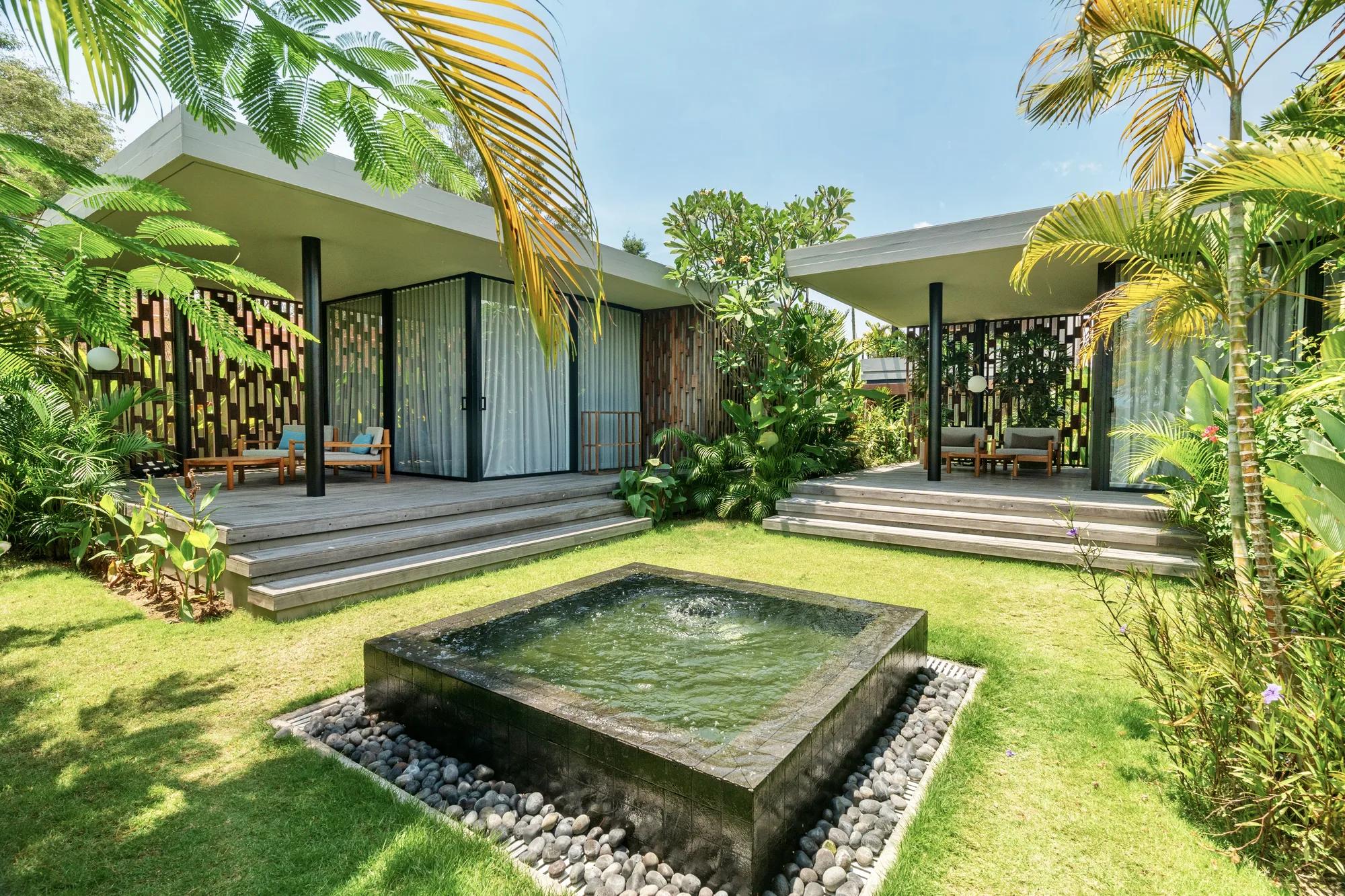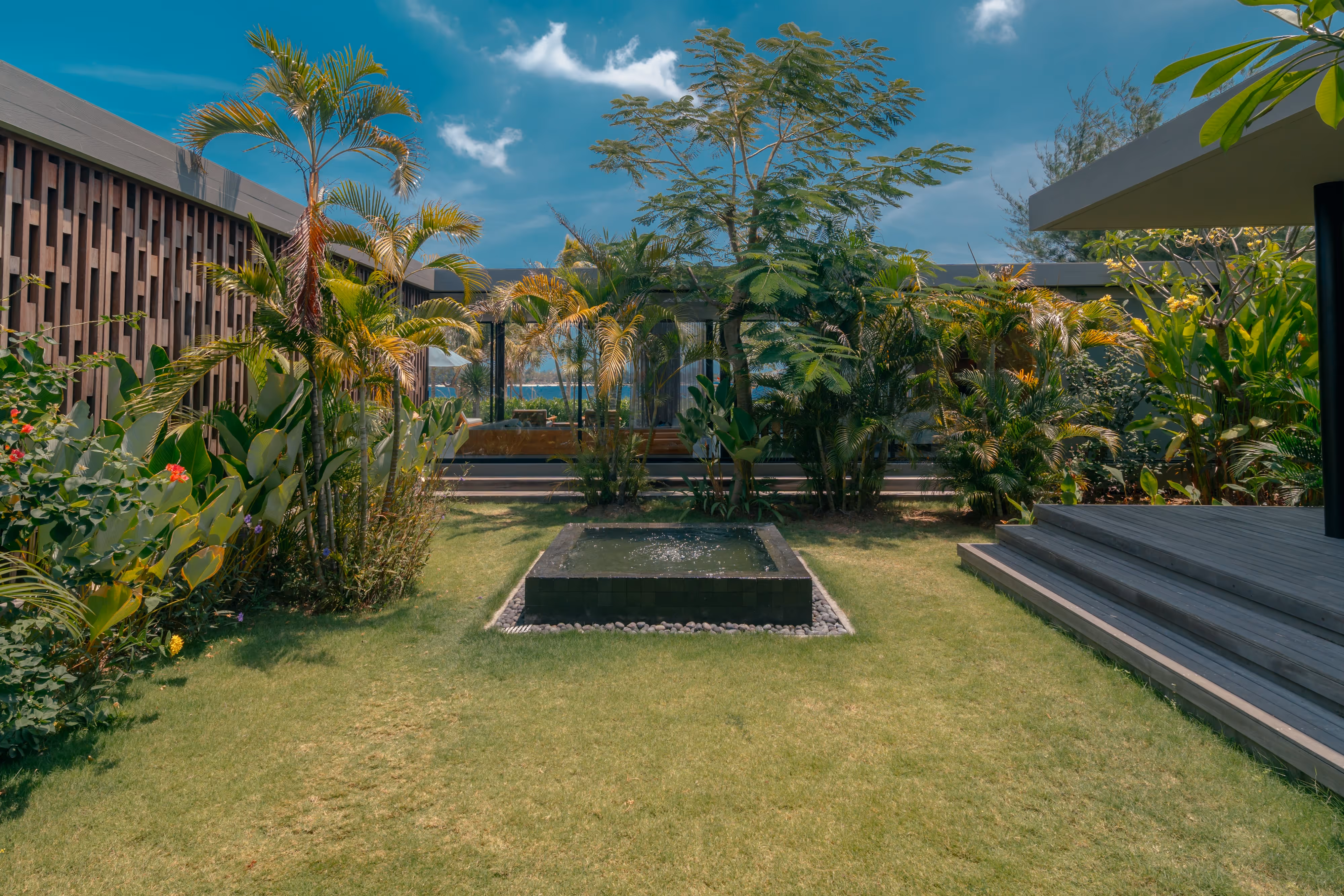 Designed for families and groups who value space without compromise, the Three Bedroom Villa is BASK’s most expansive private residence. Wrapped around a tranquil garden and water features, the villa unfolds across open living areas, shaded terraces, and uninterrupted beachfront views.